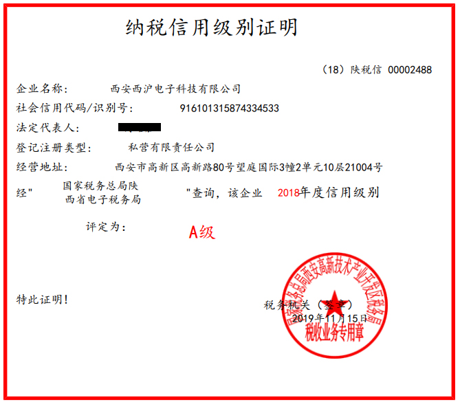 2018年度纳税等级A
