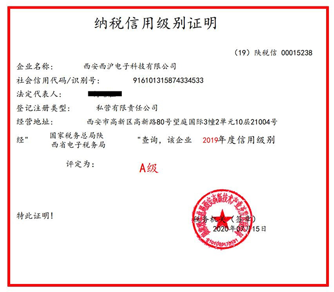 2019年度纳税等级A