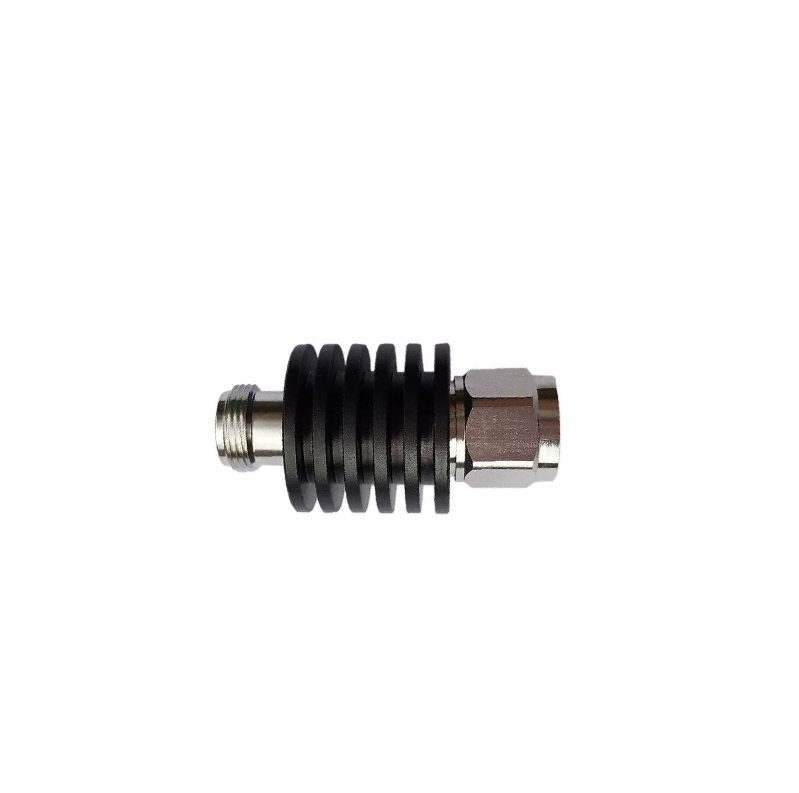 N 衰减器 DC-18G 50W | NMF-18002XX MF表示衰减器 N表示连接器 18表示工作频率18GHz 002表示功率2W XX表示衰减值 | 外导体:黄钢镀镍 内导体:铍铜镀金 绝缘体:PTFE 衰减量:1-10,15,20,25,30,40,50,60dB VSWR≤1.40@18GHz VSWR≤1.20@6GHz |