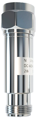 DIN/L29 衰减器 DC-6G 5W | DINMF-06002XX MF表示衰减器 DIN表示连接器 06表示工作频率6GHz 005表示功率5W XX表示衰减值 | 外导体:黄铜镀镍 内导体:铍铜镀金 绝缘体:PTFE 衰减量:1-10,15,20,30,40dB VSWR≤1.30@6GHz |