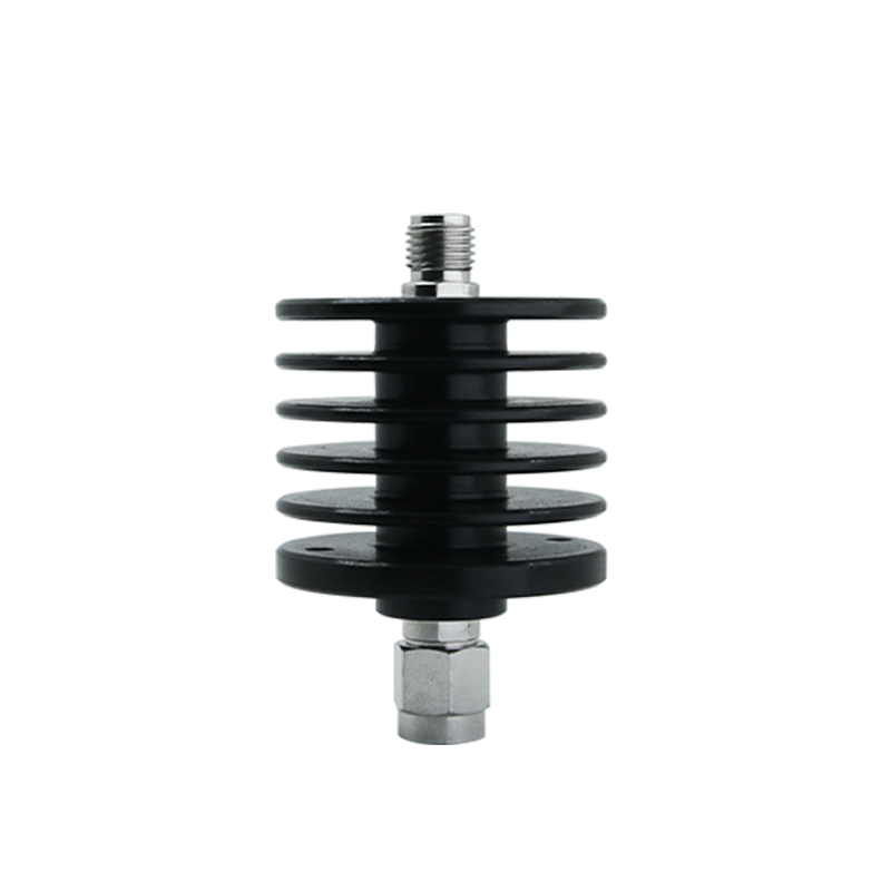 DIN/L29 衰减器 DC-6G 100W | DINMF-06002XX MF表示衰减器 DIN表示连接器 06表示工作频率6GHz 00100表示功率100W XX表示衰减值 | 外导体:黄铜镀镍 内导体:铍铜镀金 绝缘体:PTFE 衰减量:1-10,15,20,30,40dB VSWR≤1.30@6GHz |