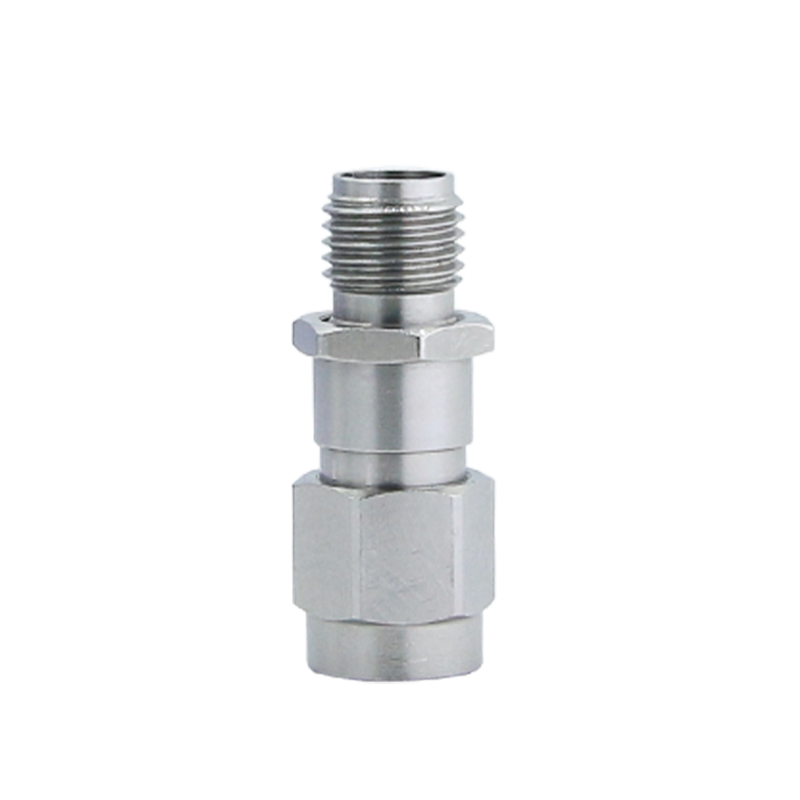 2.4 衰减器 DC-50G 2W | 2.4MF-50002XX MF表示衰减器 2.4表示连接器 50表示工作频率50GHz 002表示功率2W XX表示衰减值 | 外导体:不锈钢钝化 内导体:铍铜镀金 绝缘体:PTFE 衰减量:1-10,20,30dB VSWR≤1.30@50GHz |