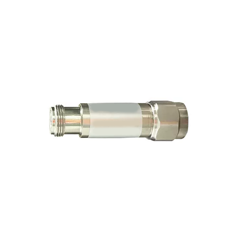 DIN/L29 衰减器 DC-6G 20W | DINMF-06002XX MF表示衰减器 DIN表示连接器 06表示工作频率6GHz 0020表示功率20W XX表示衰减值 | 外导体:黄铜镀镍 内导体:铍铜镀金 绝缘体:PTFE 衰减量:1-10,15,20,30,40dB VSWR≤1.30@6GHz |