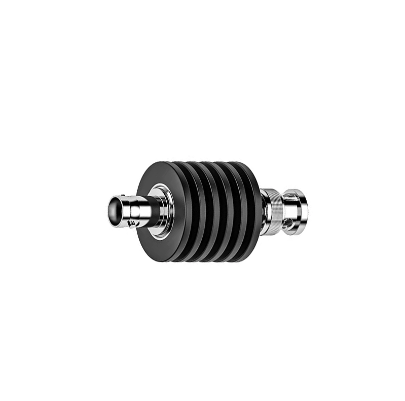 DIN/L29 衰减器 DC-6G 50W | DINMF-06002XX MF表示衰减器 DIN表示连接器 06表示工作频率6GHz 0050表示功率50W XX表示衰减值 | 外导体:黄铜镀镍 内导体:铍铜镀金 绝缘体:PTFE 衰减量:1-10,15,20,30,40dB VSWR≤1.30@6GHz |